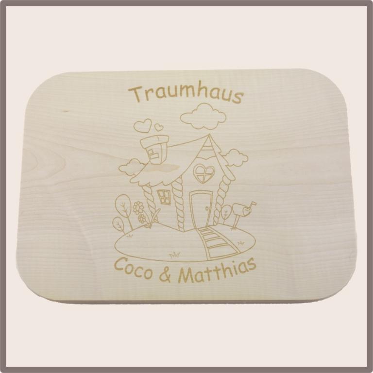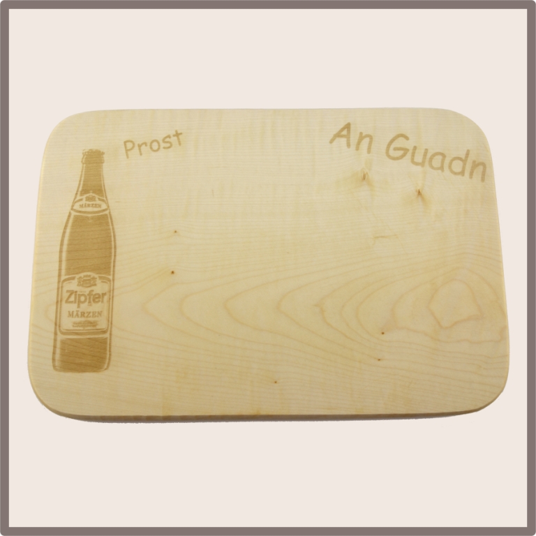Jausenbrett mit individueller Gravur aus massiver unverleimter Erle gefertigt.