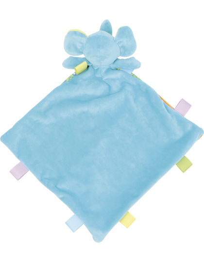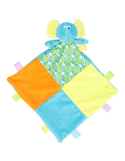 An einer Ecke ist ein Elefant mit einer internen Rassel im Körper angenäht.
