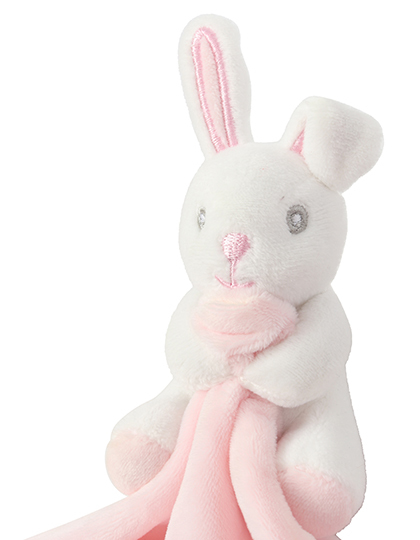 An einer Ecke ist ein Häschen mit einer internen Rassel im Körper angenäht.